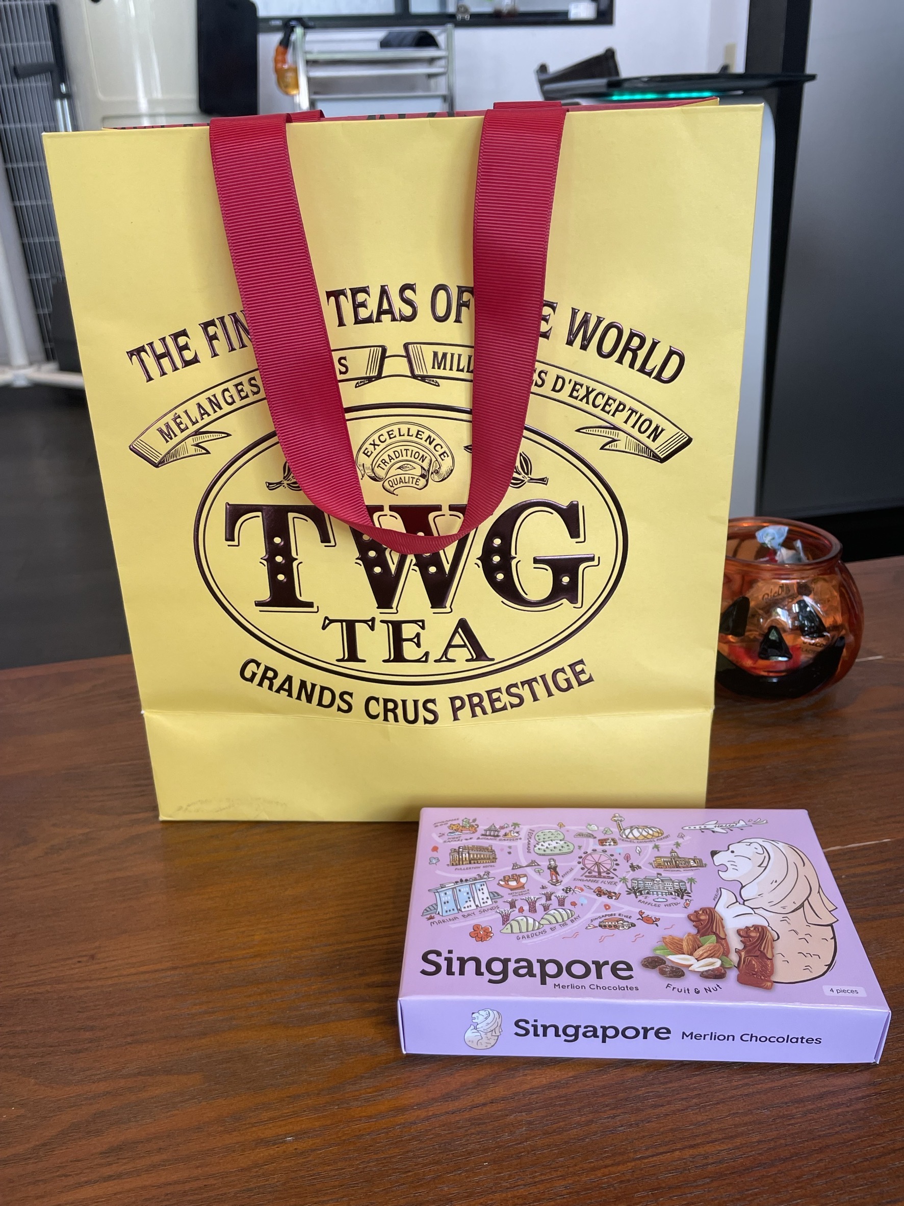 シンガポールの有名なお店のチョコやラクサを頂いたり